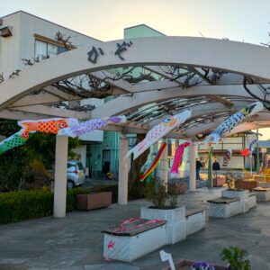 入口からカラフルで鮮やかな鯉のぼり達が風に揺られて皆さまのお越しをお待ちしております。