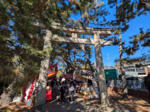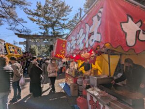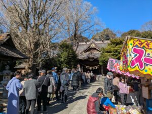 毎年2月1日、玉敷神社の参道には「だるま」や食べ物などの露店が所狭しと立ち並び、威勢の良い掛け声で活気づきます。
