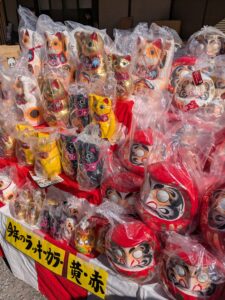露店に並ぶたくさんのだるま達。