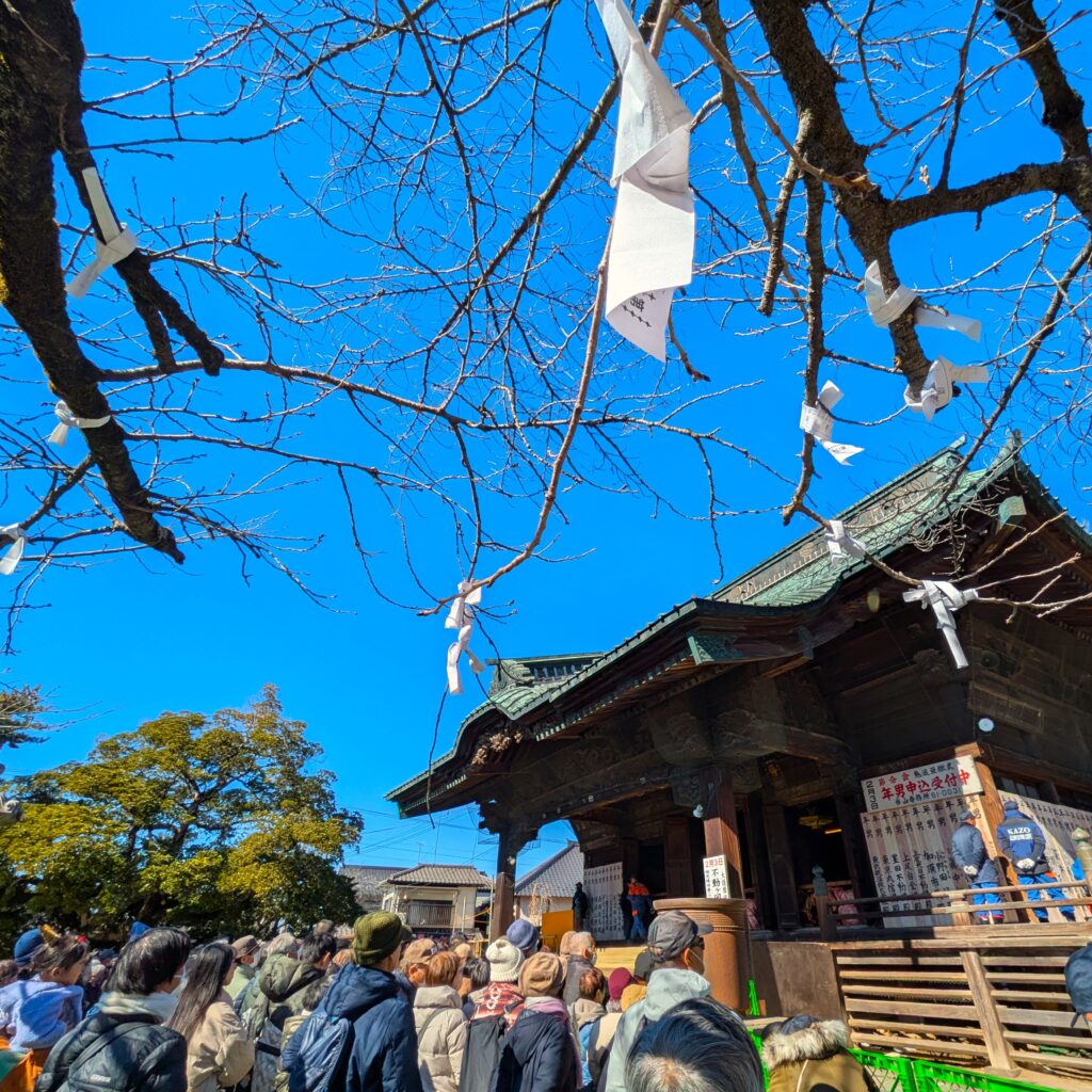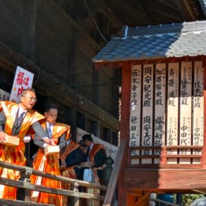 裃(かみしも)姿の年男・年女が開運厄除け、無病息災、五穀豊穣、家内安全、商売繁盛などを祈願して福銭・福豆を「鬼は外、福は内!」の掛け声と共に撒くと、参拝客たちが『福』を掴もうと一斉に手を伸ばし、その賑わいは最高潮に達します。